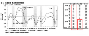 山本代表提供の資料に、CI(コンポジット・インデックス)とDI(ディフュージョン・インデックス)という指数があります。これらは景気の動きをあらわす指数ですが、この推移を見てみますと、総合指数においては2009年3月から前月差がプラスに転じています(下図参照)。